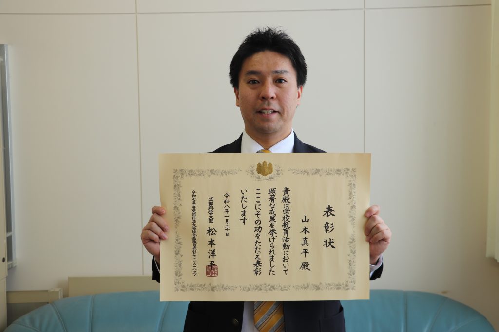 名寄高校(今中勇希校長)の山本真平教諭(37)は、1月20日に東京都で開催された文部科学大臣優秀教職員表彰式で、優秀教職員の表彰を受けた。