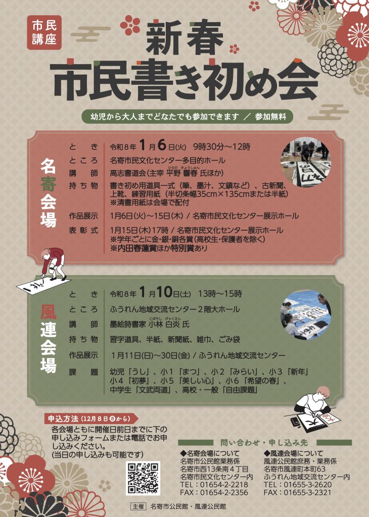 お問い合わせ 風連公民館庶務・業務係(名寄市風連町本町63番地・ふうれん地域交流センター内) TEL: 01655-3-2321