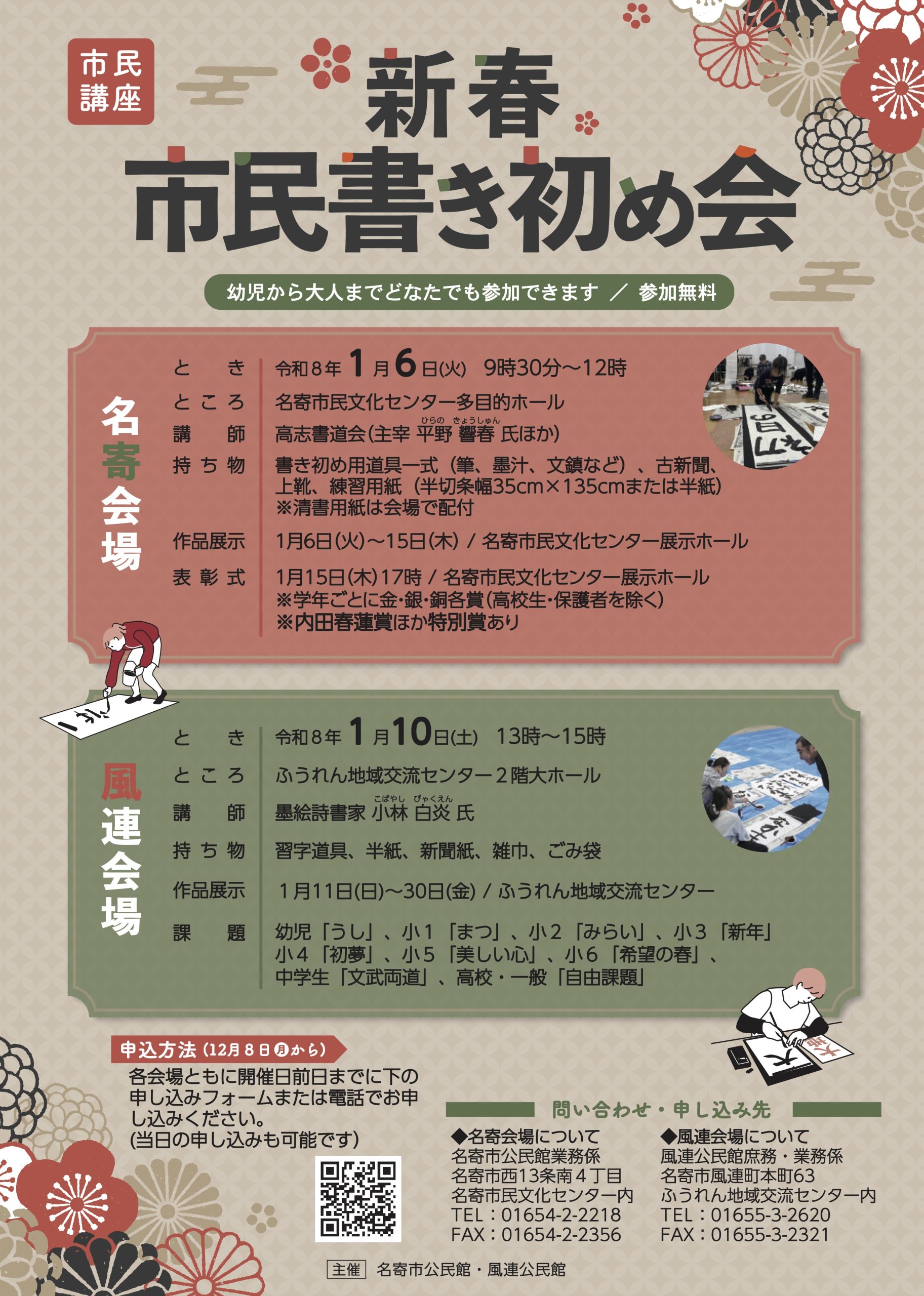 お問い合わせ 名寄市公民館業務係(名寄市西13条南4丁目・名寄市民文化センター内) TEL: 01655-3-2620