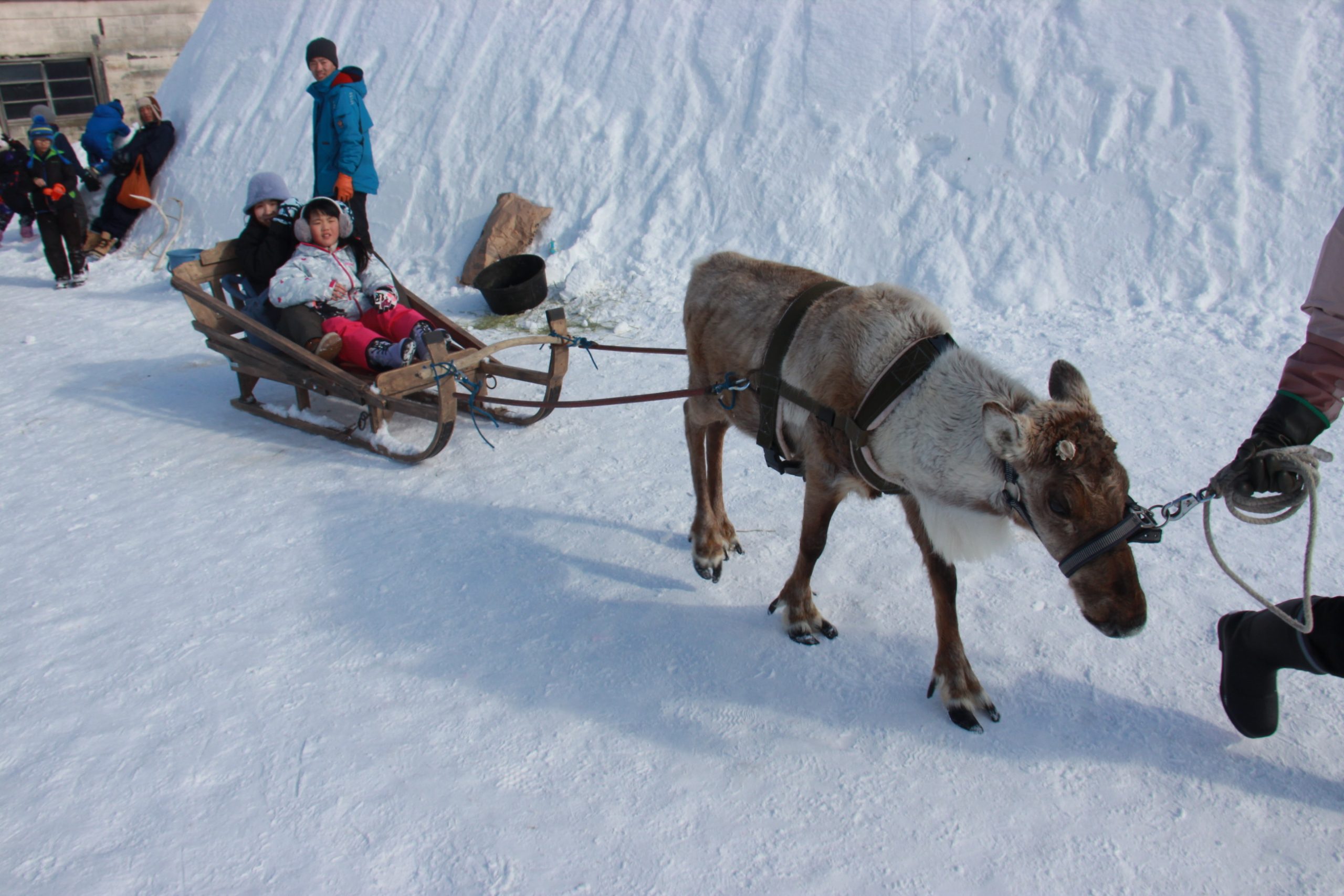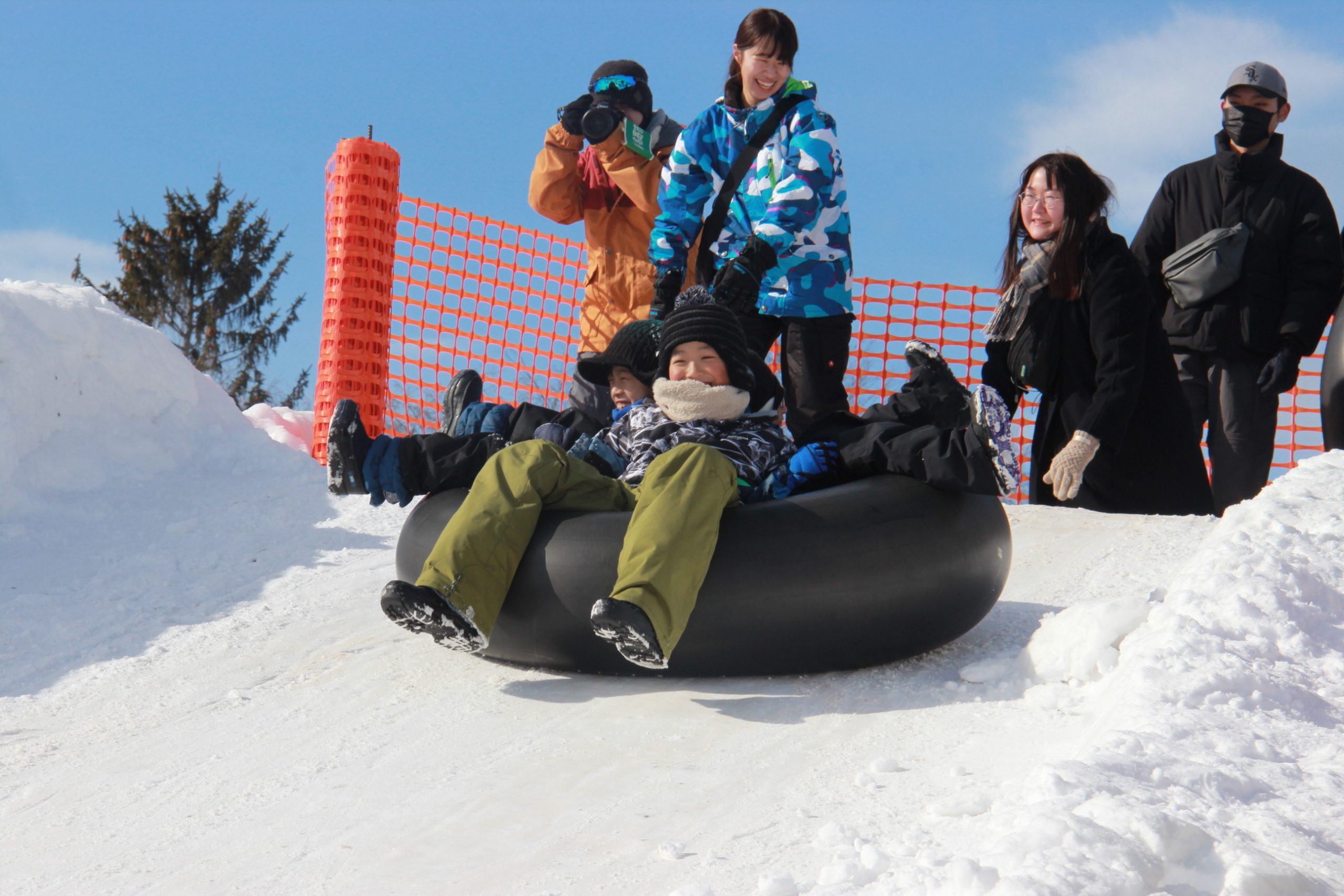 その他、スノーモービル遊覧、ジャンボ滑り台が用意され、歓声が上がっていた。ほろのべトナカイ観光牧場(幌延町)からトナカイ2頭が登場し、そりを引くなど、多くの子どもたちが存分に楽しんでいた。