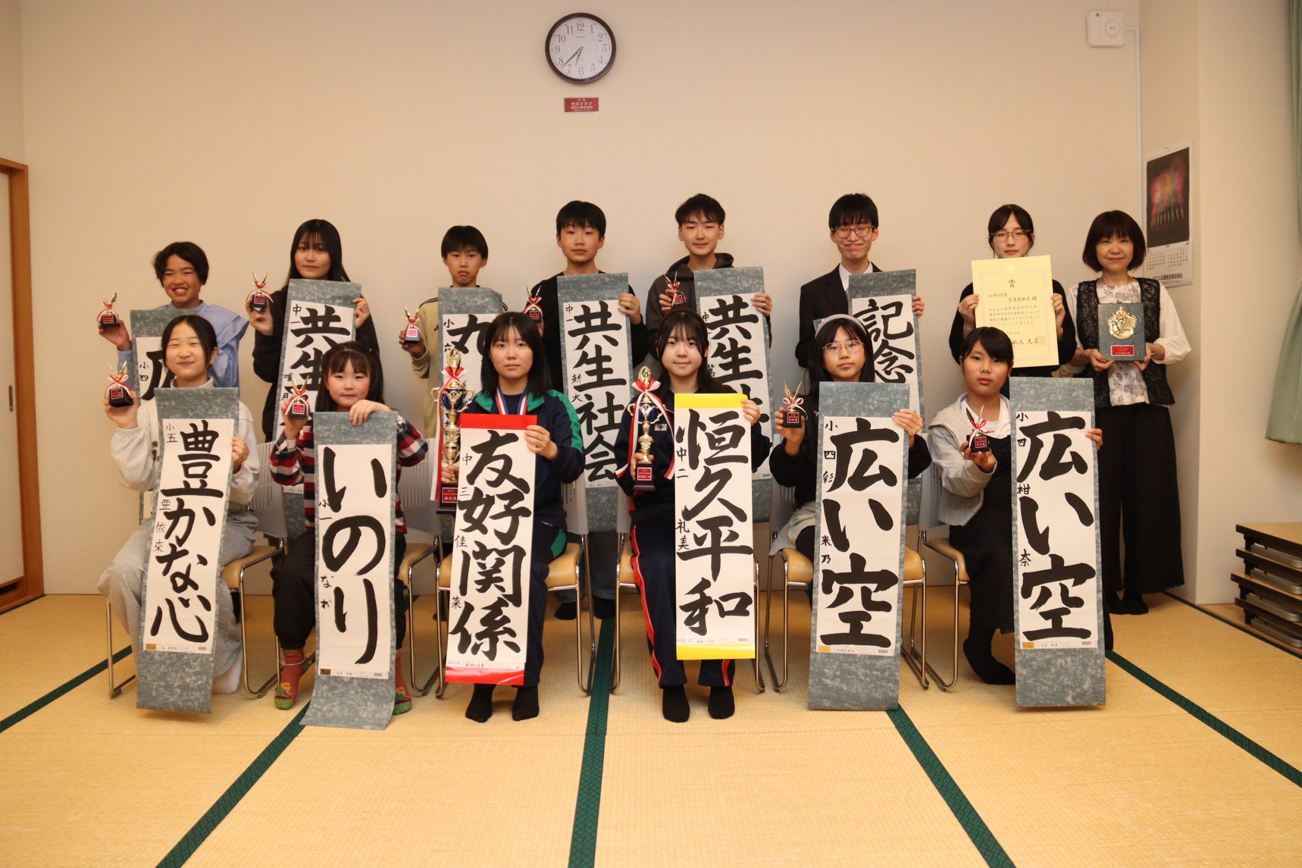 この他、同教室から特別賞に、荒井菜緒さん(南小2年)、長谷川瑛大さん(名寄小4年)、元木柑奈さん(東小5年)、久保彩来乃さん(同5年)、井上優歩さん(同4年)、五十嵐皐人さん(西小6年)、谷亜依來さん(南小6年)、東藤大都さん(東中1年)、林川篤斗さん(名寄中2年)、清水新大さん(同2年)、平島唯月さん(東中2年)、佐々木隆雅さん(名寄高1年)の12人が選出された。
