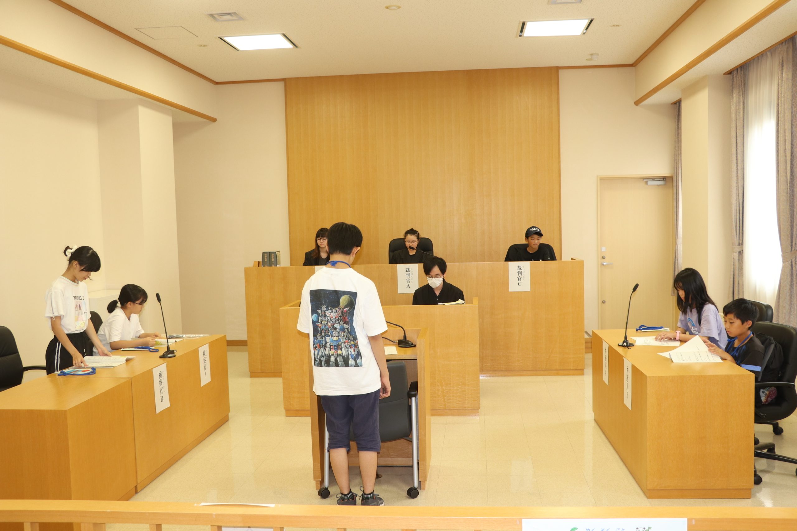旭川地方・家庭裁判所名寄支部主催の夏休み子ども企画「裁判所ってどんなところ?みんなで体験!」が、28日午後1時半から同支部内で行われ、小学生が模擬裁判などを体験した。