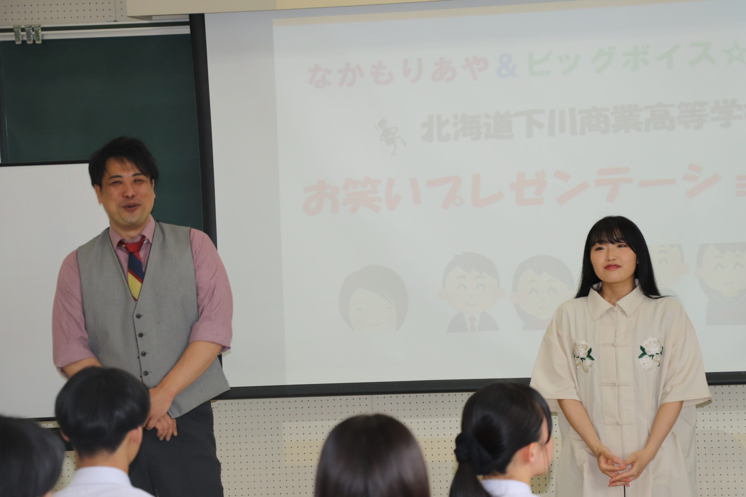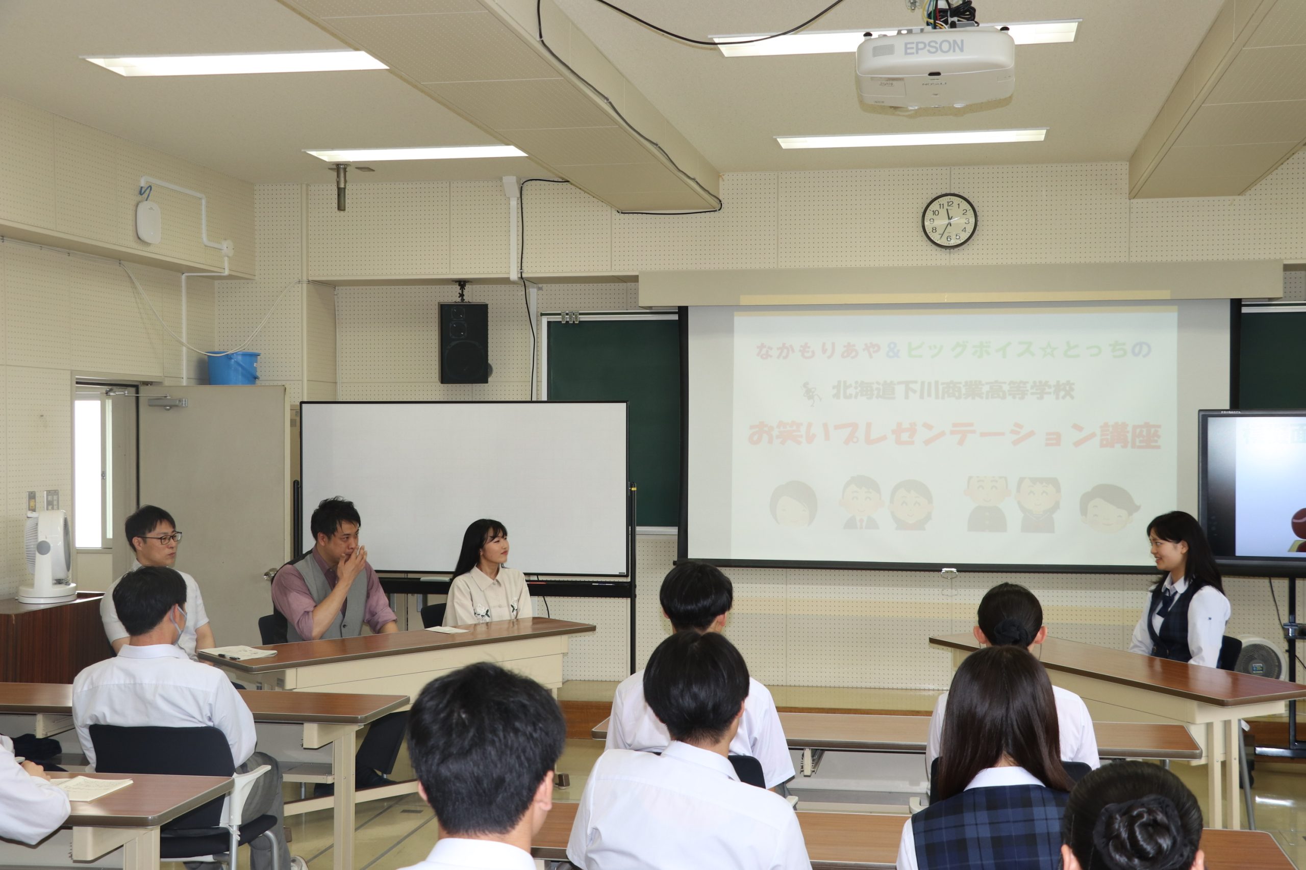 模擬面接で表現力など学ぶ 下川商業高校でプレゼン講座 吉本興業札幌から2人の芸人招く