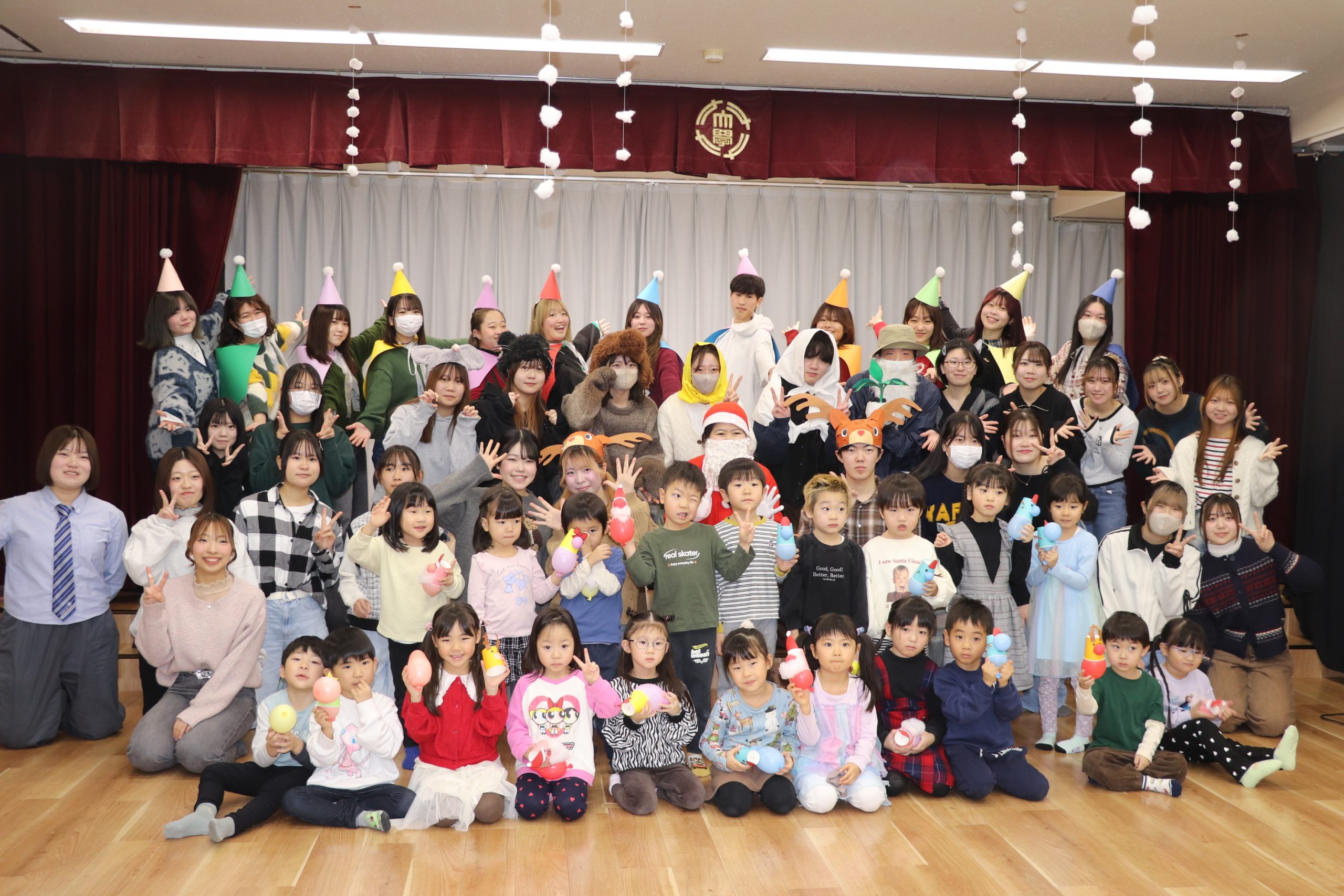 最後に、年中児、年長児に分かれて学生と一緒に記念撮影。学生も園児たちも、一足早いクリスマスとなった。