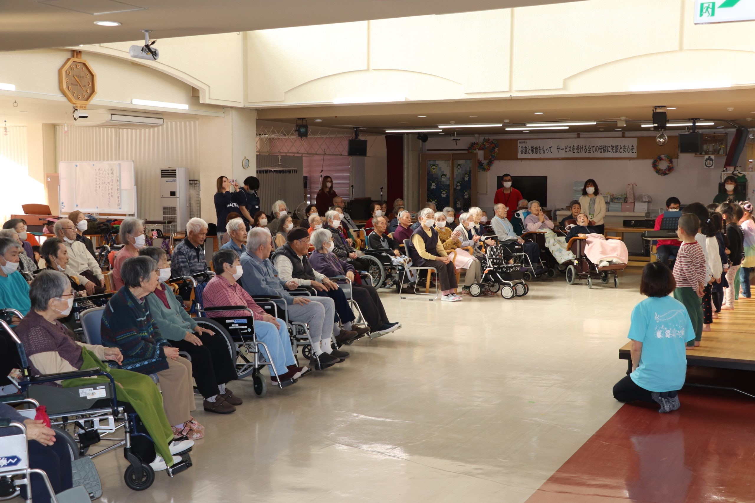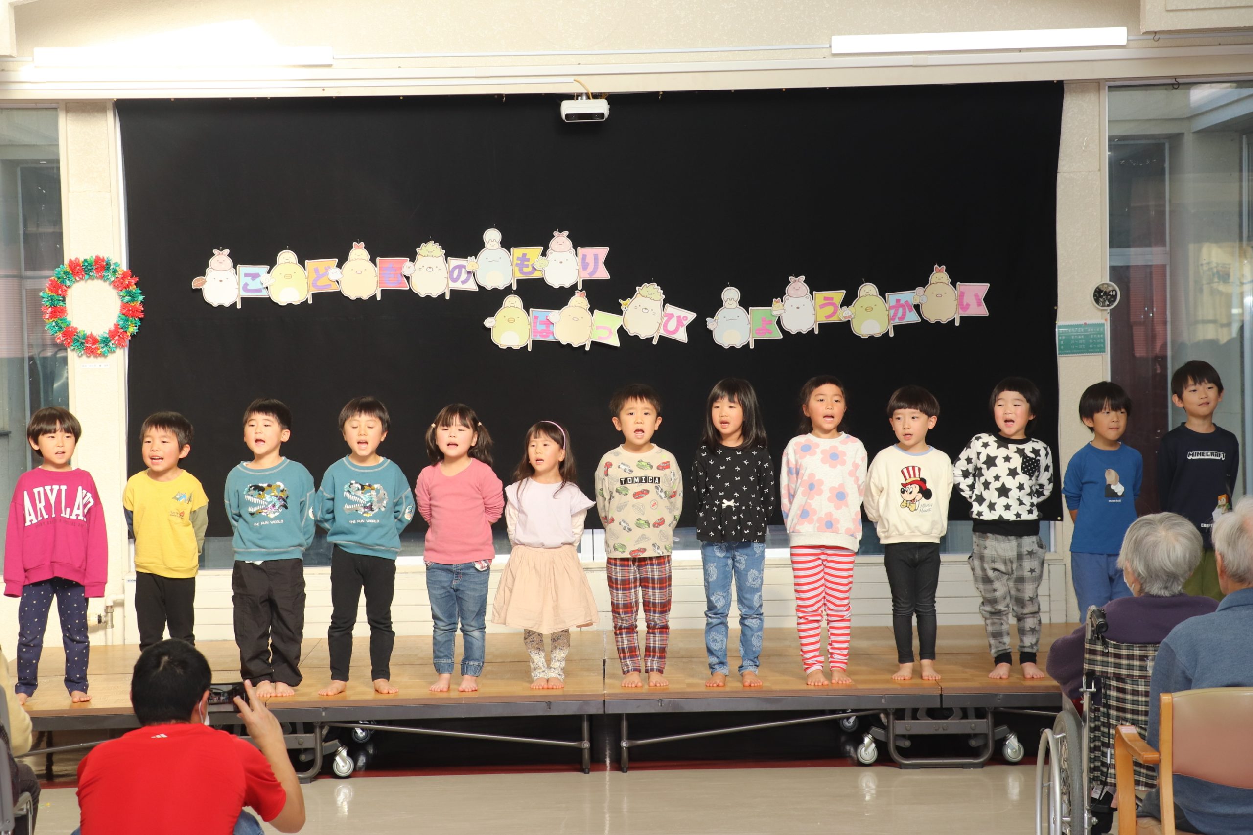 こどものもり園児のあけぼの園での発表は、コロナ禍で中断した時期もあるが、昨年に続いての訪問となった。