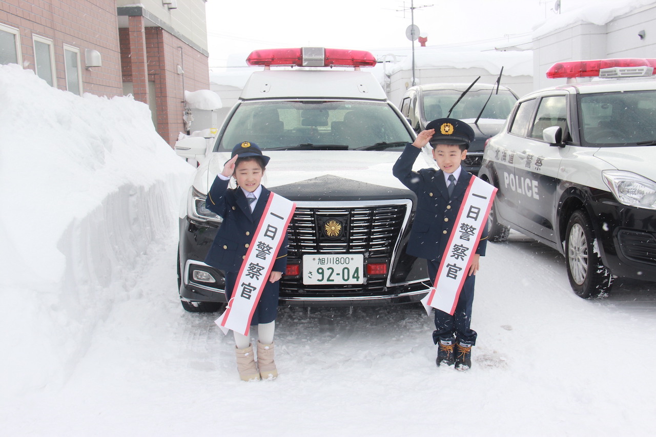 同署では毎年、「110番の日」で行事を企画しているが、今年は風連中央小学校児童に参加を依頼したことや、風連地区で啓発活動を実施することから、風連地区住民になじみが深い風連駐在所(武田慎一所長)の「一日風連駐在所長」委嘱で企画した。