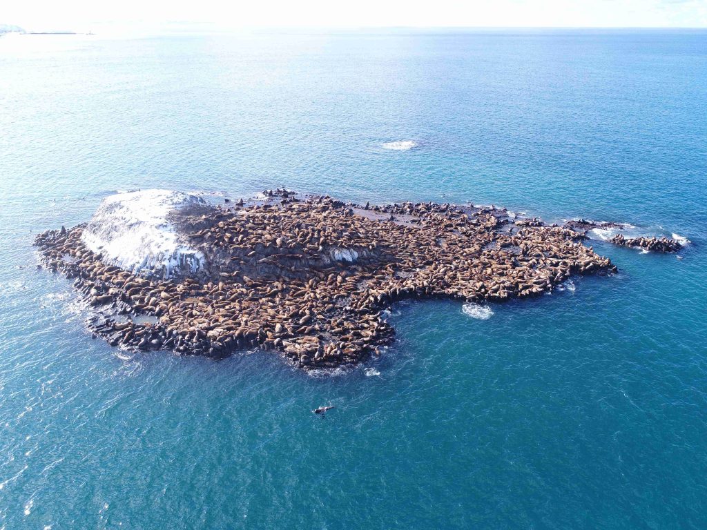 稚内水試では、宗谷岬沖の弁天島でドローンを使ったトドの来遊観測を実施。1月29日には2千頭以上の来遊を観測し、同水試では今季最多とみている。