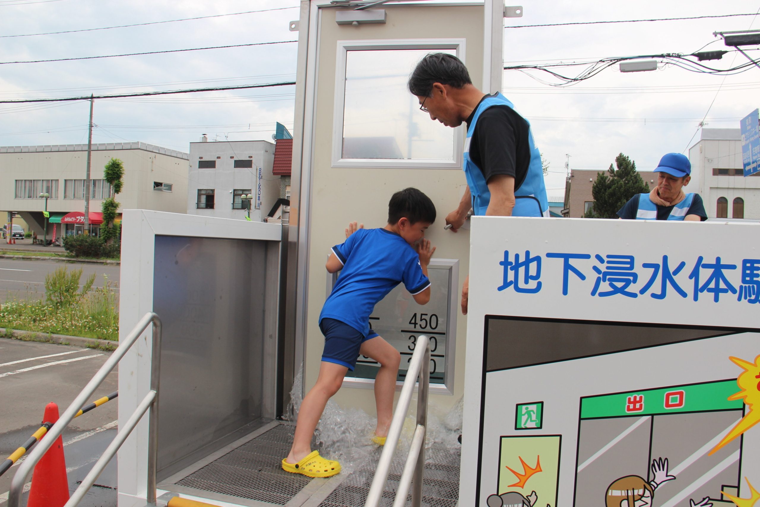 市主催の「防災フェスタなよろ2025」が、21日午前10時から「よろーな」で開かれ、来場者が浸水体験やパネル展示などを通して防災への理解を深めた。