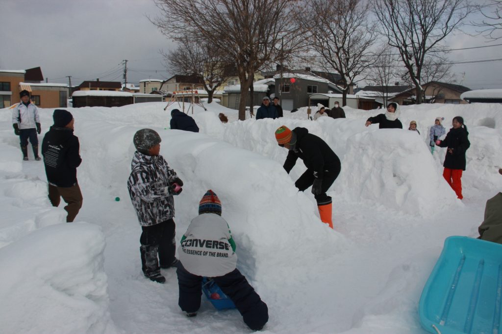 西町1区町内会(柚留木保秀会長)の第4回「スノー子供ランド」が、25日午後2時からカエデ公園(市内西11南4)で開かれ、滑り台や雪合戦、宝探しなどで盛り上がった。