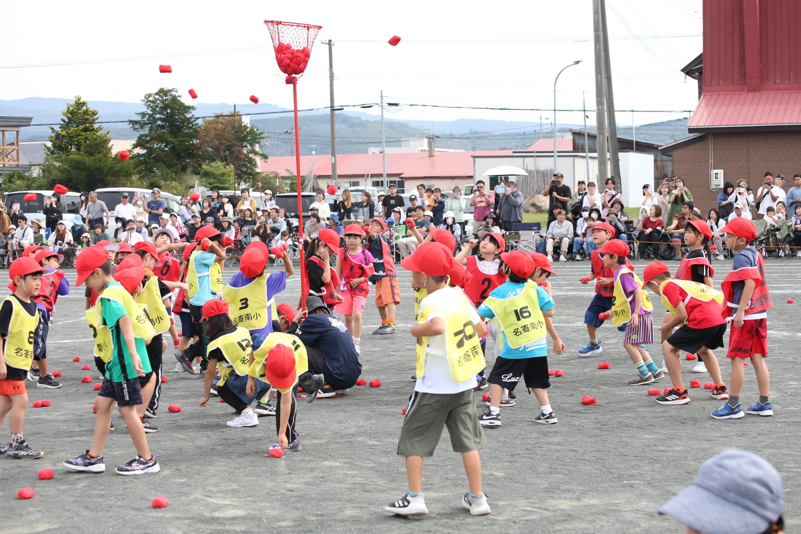 団体競技では、1年生が「レッツ!玉入れ」。ダンスの合間に玉入れをするもので、かわいらしく一生懸命な姿に、観客席の保護者らは目を細めた。
