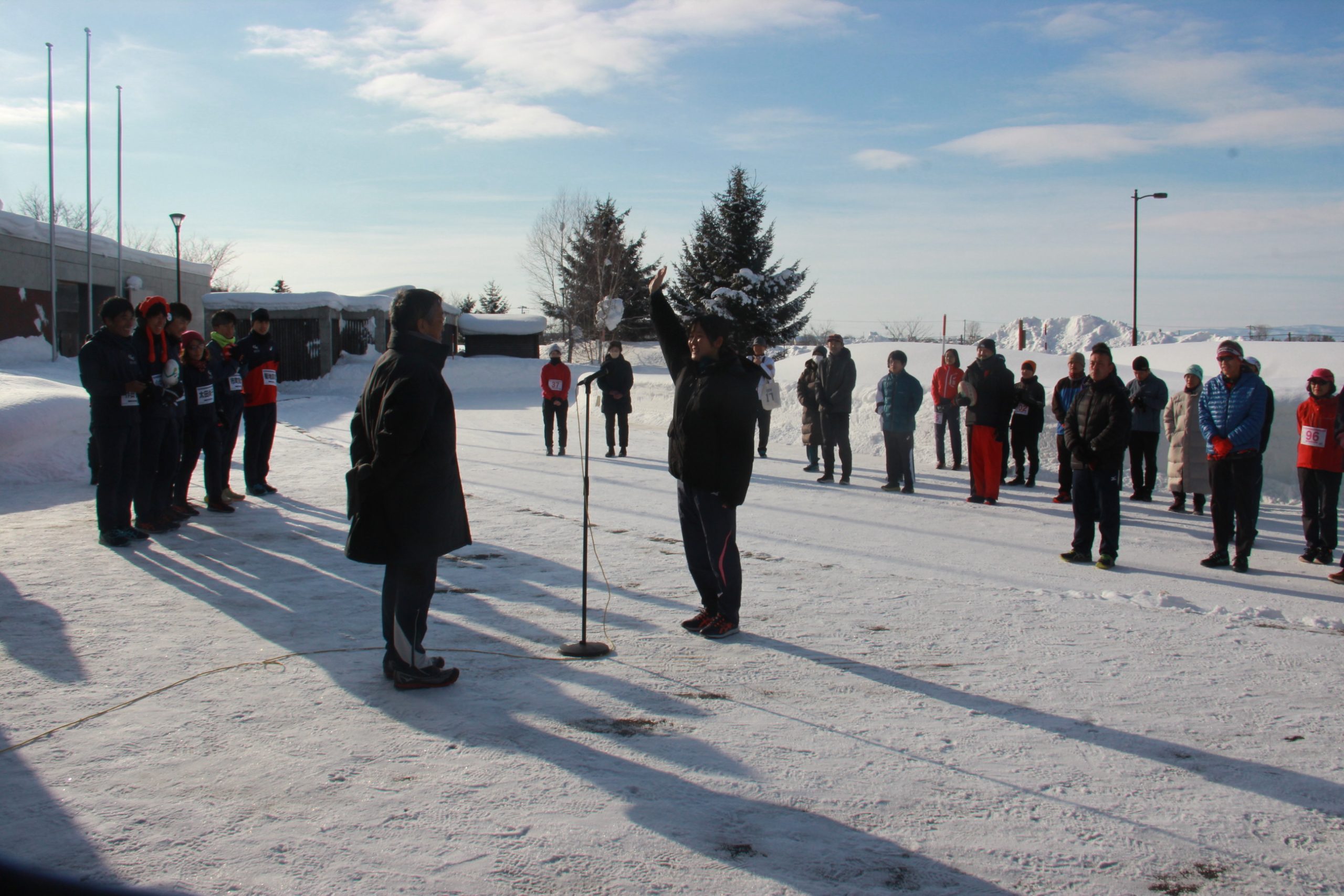 午前9時時点の気温はマイナス6.9度(アメダス観測)で、この時期の名寄として寒さは厳しくなかったが、晴天が広がる中、健脚を競いながら快く汗を流していた。