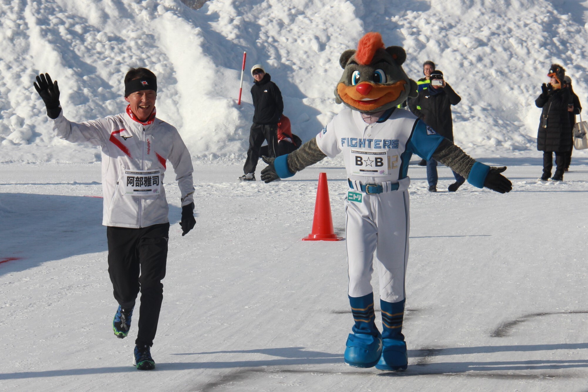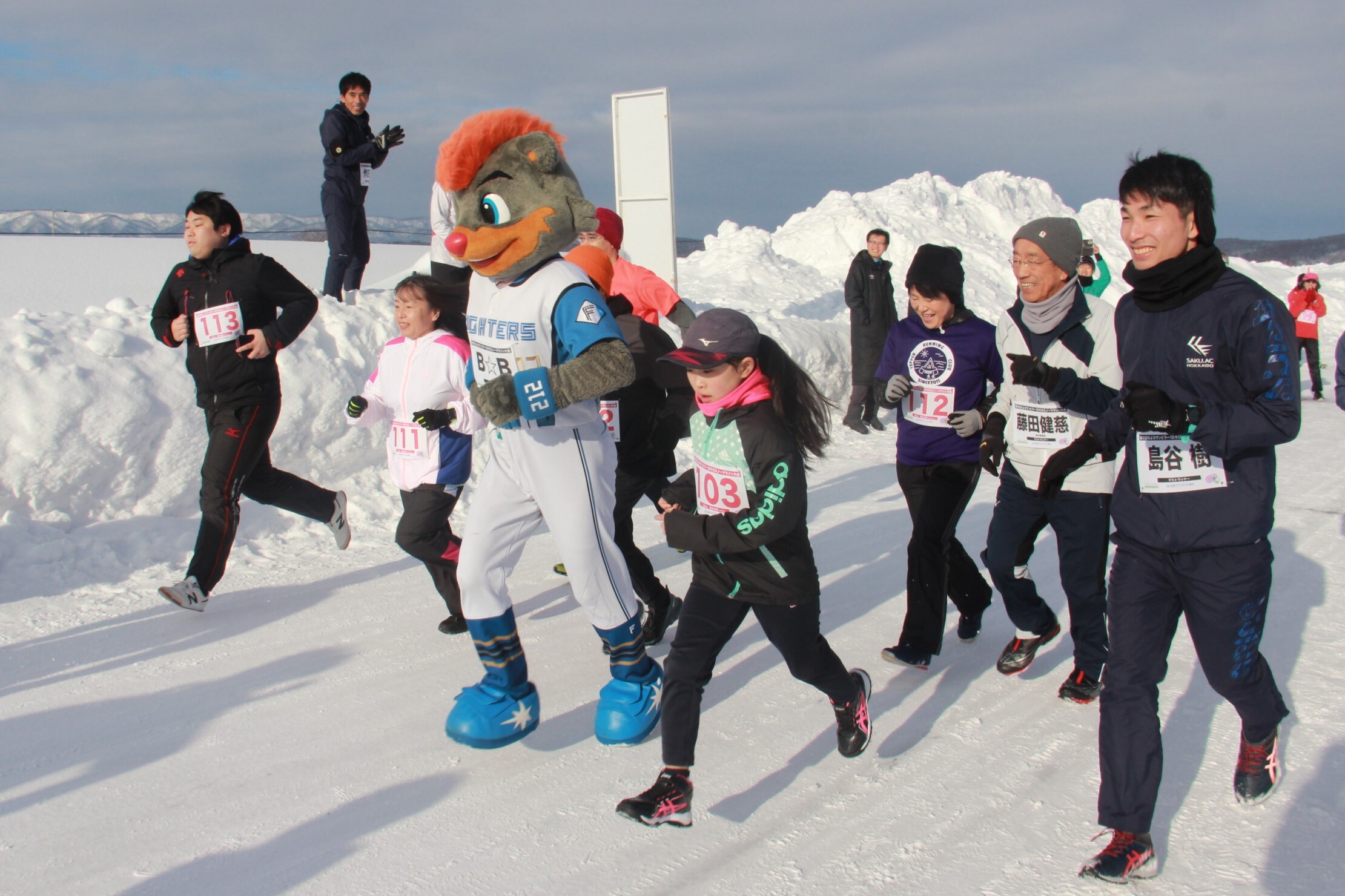 ゲストランナーは、作.AC北海道監督の作田徹さん、太田尚子さん、菊地真司さん、島谷樹さん、市町耀大さん。特別ゲストで、北海道日本ハムファイターズのマスコット、名寄市スポーツみらい大志の「B☆B」が登場した。