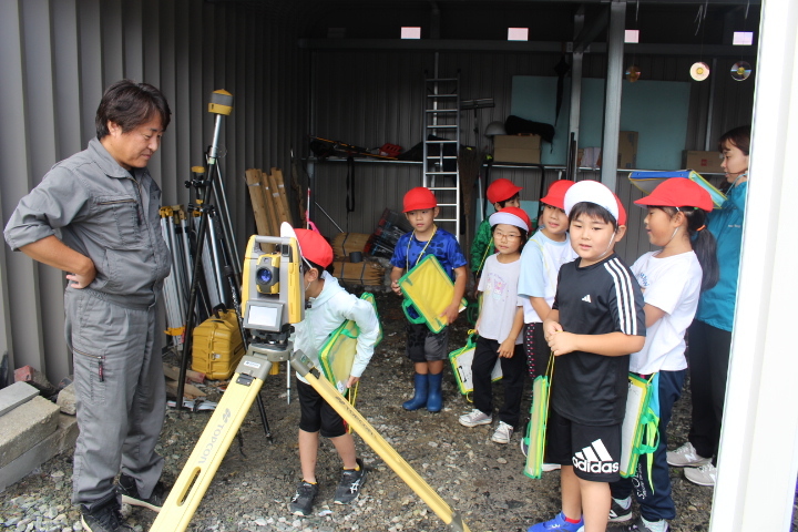 各職場を訪れた児童たちは、施設内を見学し、商品の箱詰めやラベル貼り、清掃作業、バスガイド、測量など実際に職業を体験。また、従業員に仕事のやりがいなどを質問したりしながら、仕事への理解を深めた。