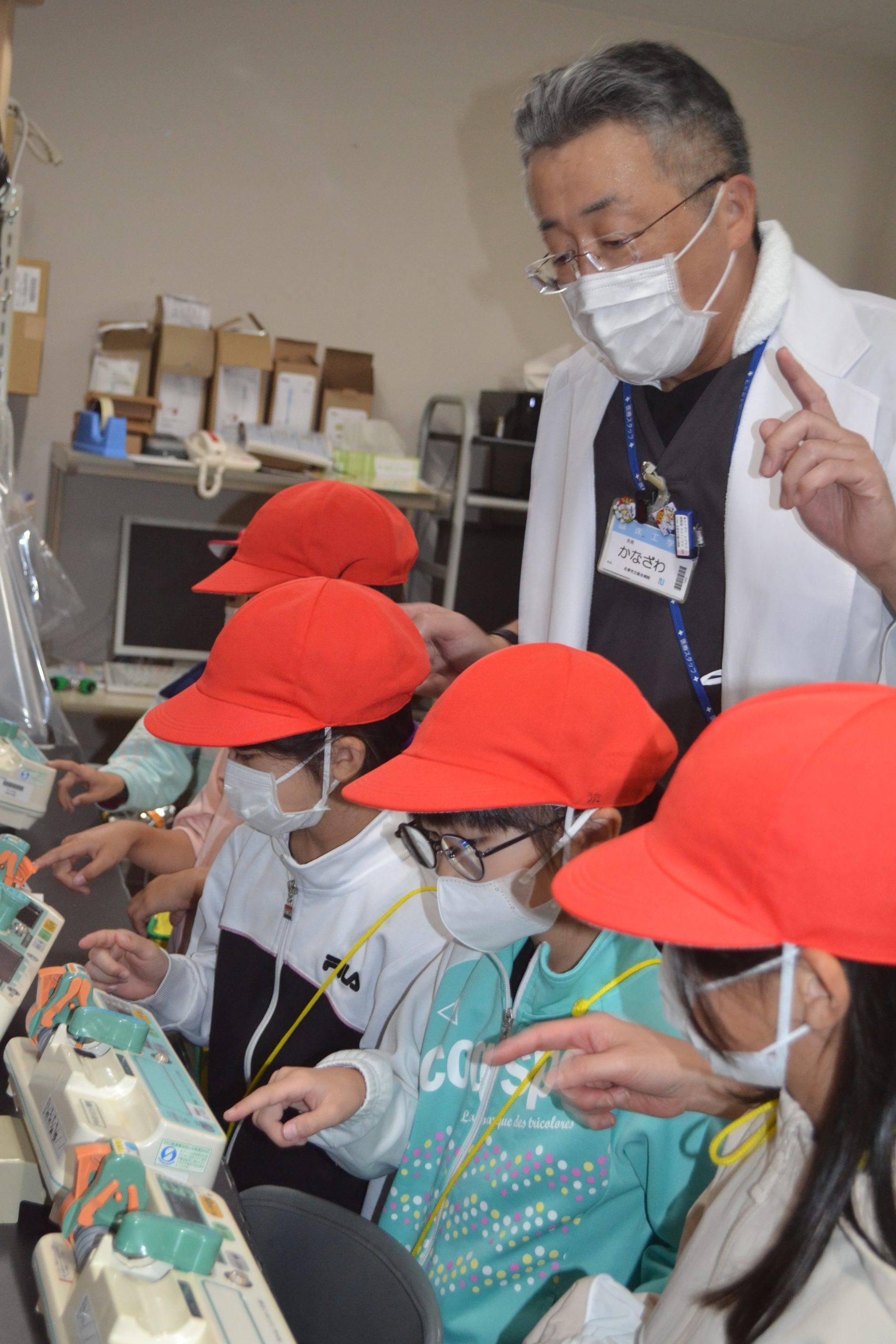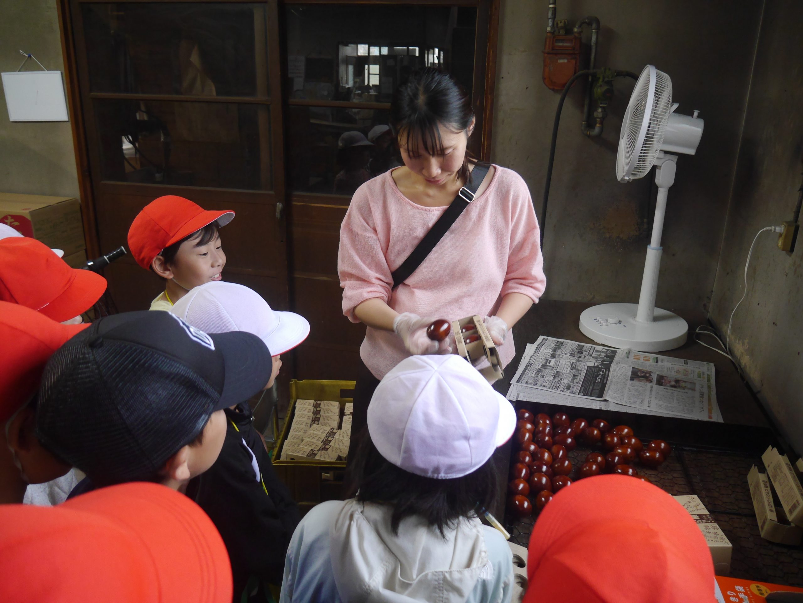 同校2年生の生活科の授業「笑顔のひみつたんけんたい」の一環。地域のさまざまな職業や人々に触れ、自分たちの生活との関わりを感じ、地域への親しみや愛着を育んでもらうことなどが目的。