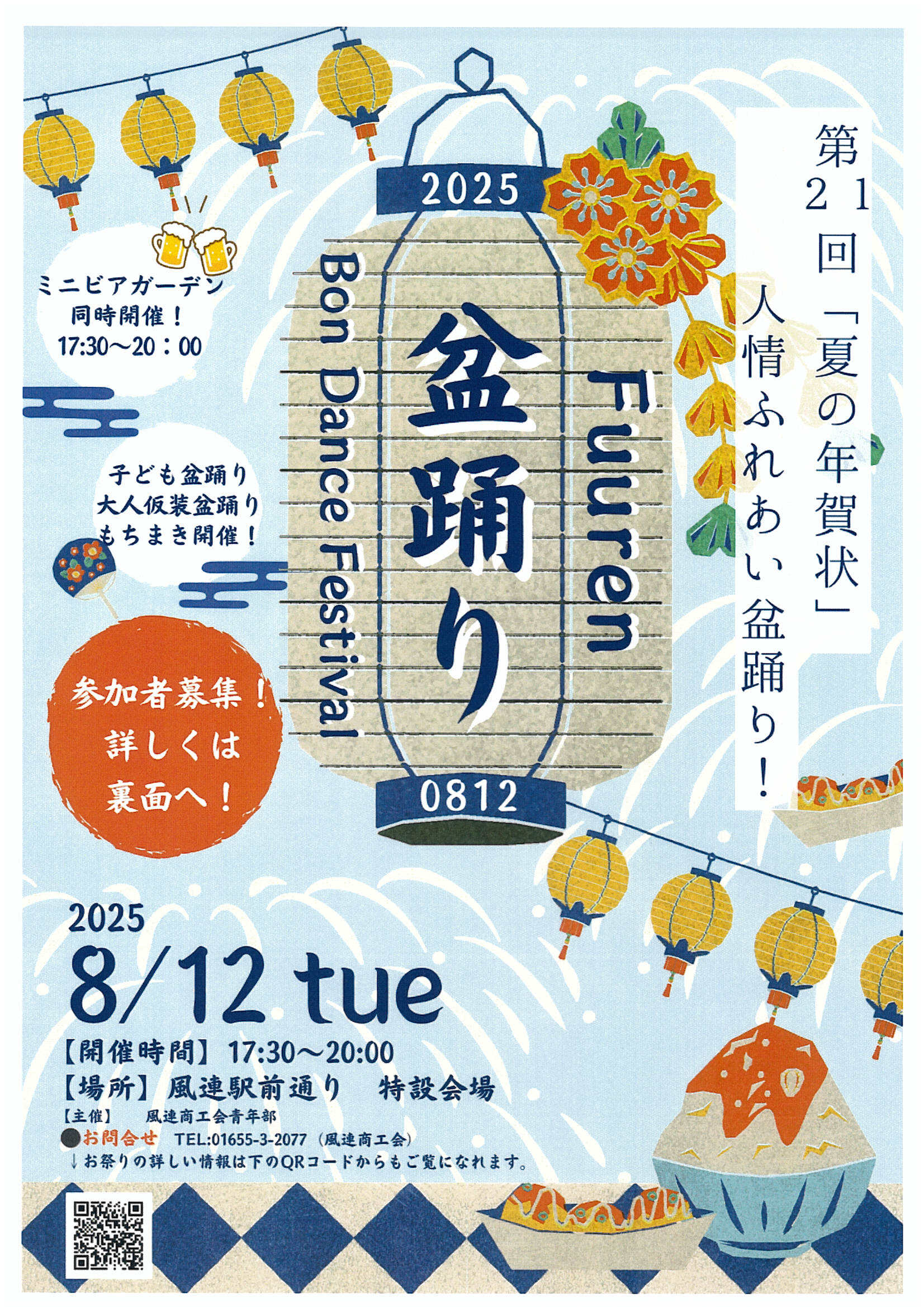 子ども盆踊り・大人仮装盆踊り・もちまきに加え、ミニビアガーデンも同時開催!