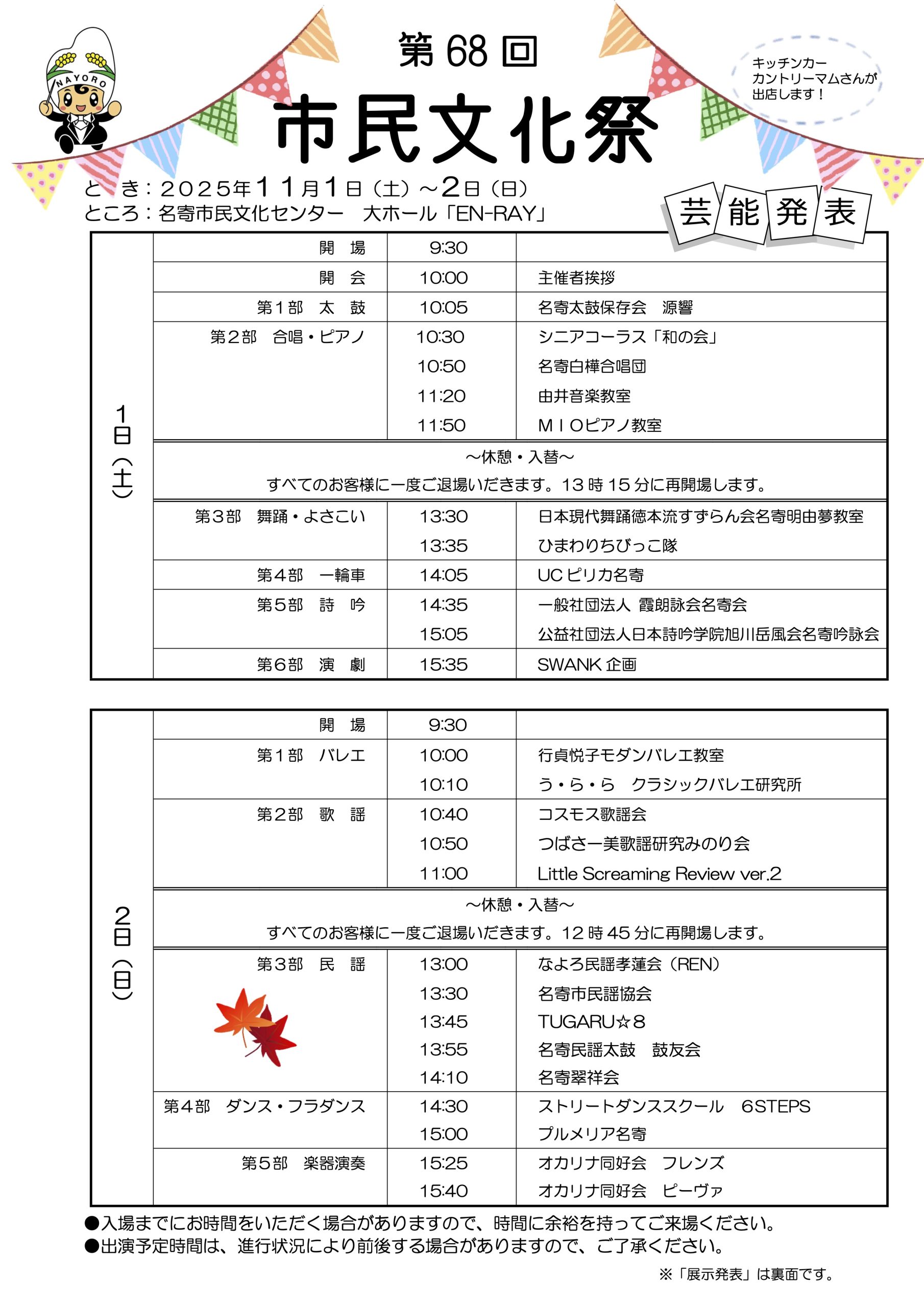 問い合わせ 市民文化祭・生涯学習フェスティバル実行委員会 事務局(名寄市民文化センター内) TEL: 01654-2-2218