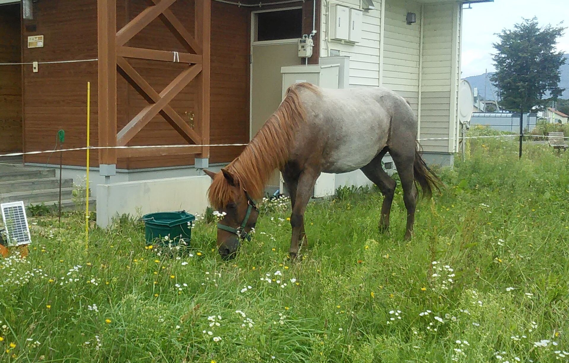美桑が丘の放牧も、7月中旬から電気柵を移設し、場所を替えてササを食べさせ、10月15日まで維持して放牧。痩せ気味も解消し、ひと安心できた。