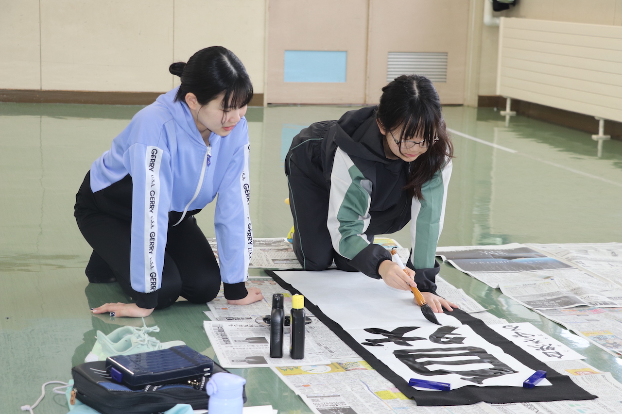 その後、参加者は、学年毎に与えられた課題について、力強く書初めをはじめた。