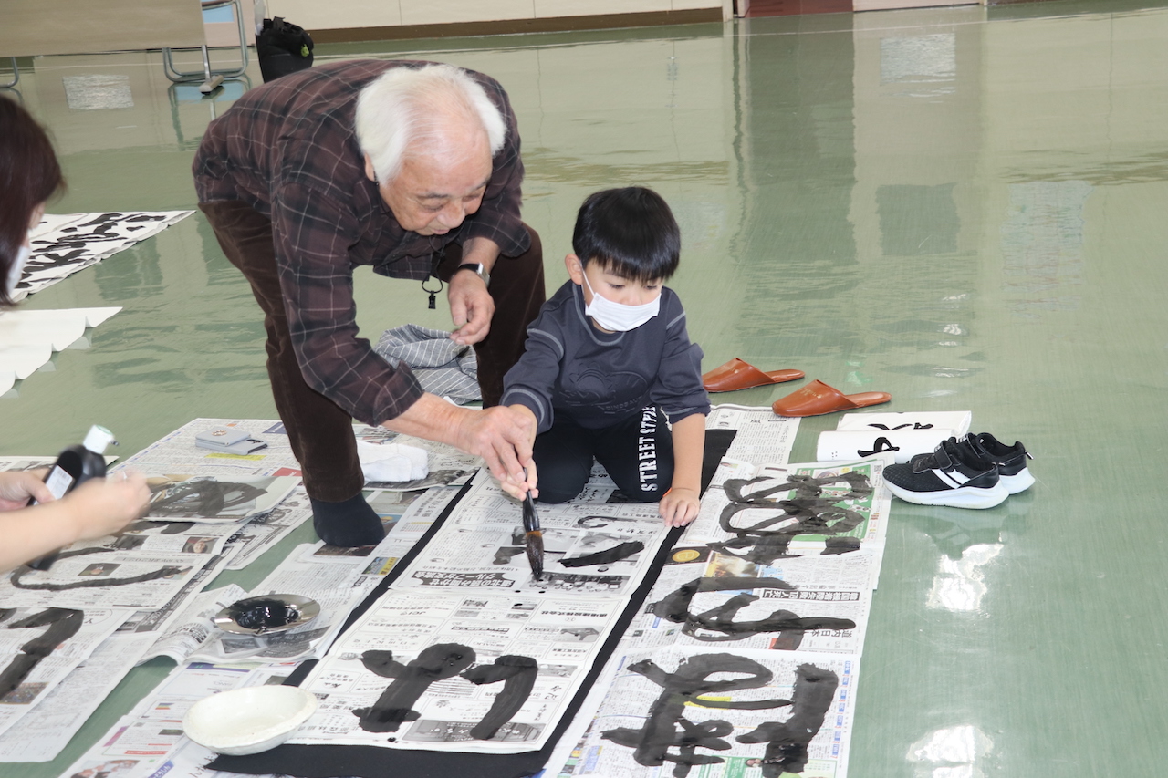 親子で力強く筆運ぶ 智恵文公民館で書初め教室