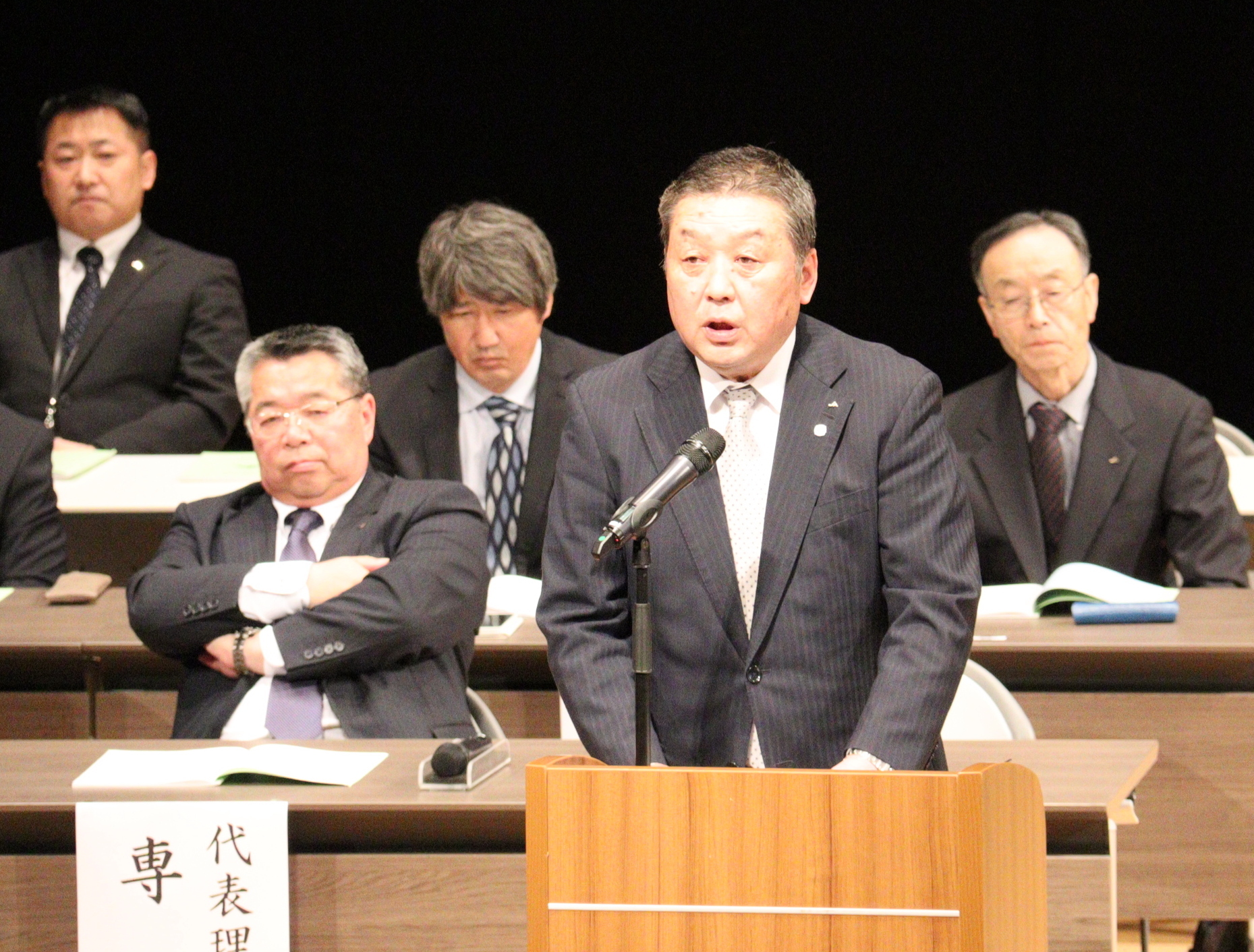 総代210人中162人が出席。冒頭の挨拶で村上組合長は、世界情勢の混迷や長引く円安の影響により、資材・燃料価格の高止まり傾向にある現状に触れながら、「皆さまの懸命な肥培管理と情熱により、販売取扱高は米の概算金増などもあり、過去最高を記録できた。これもひとえに組合員の皆さまの結束のたまもの。26年度は、第5次地域農業振興計画の4年目を迎える。老朽化した風連ライスセンターの改修など、国や道、名寄市による支援のもと、基盤整備を進めたい」と挨拶。