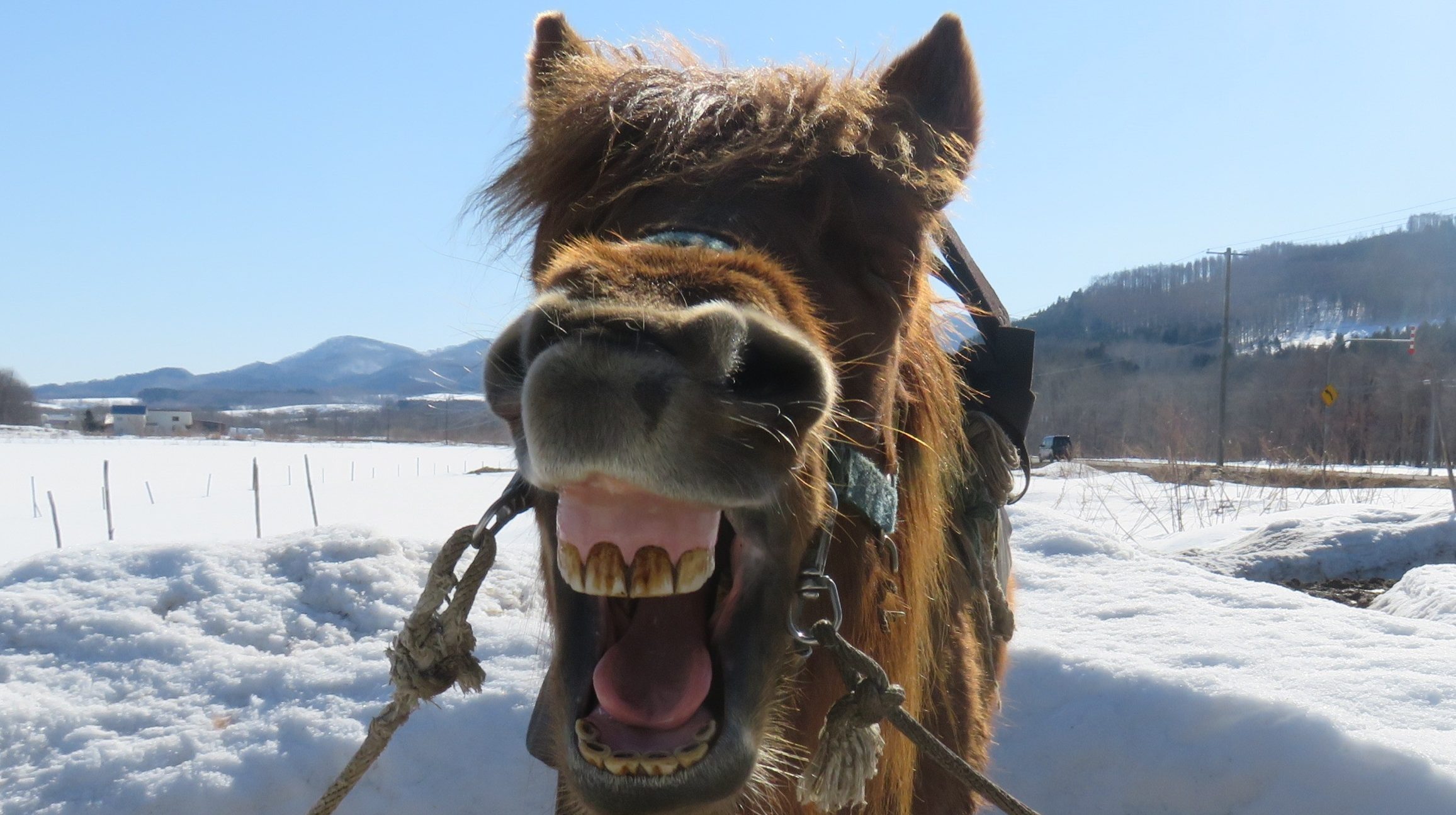 3月に入ると、ひと足早く雪解けが進む「国道」で、毎日のように愛馬に乗って軽く走りながらの散歩。5カ月ぶりの路上でも通行車両を気にすることなく、川に架かる橋も怖がらずに渡った。