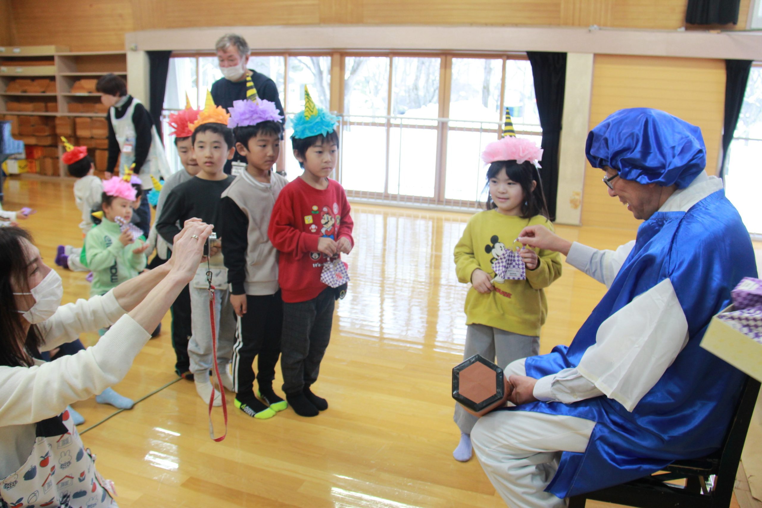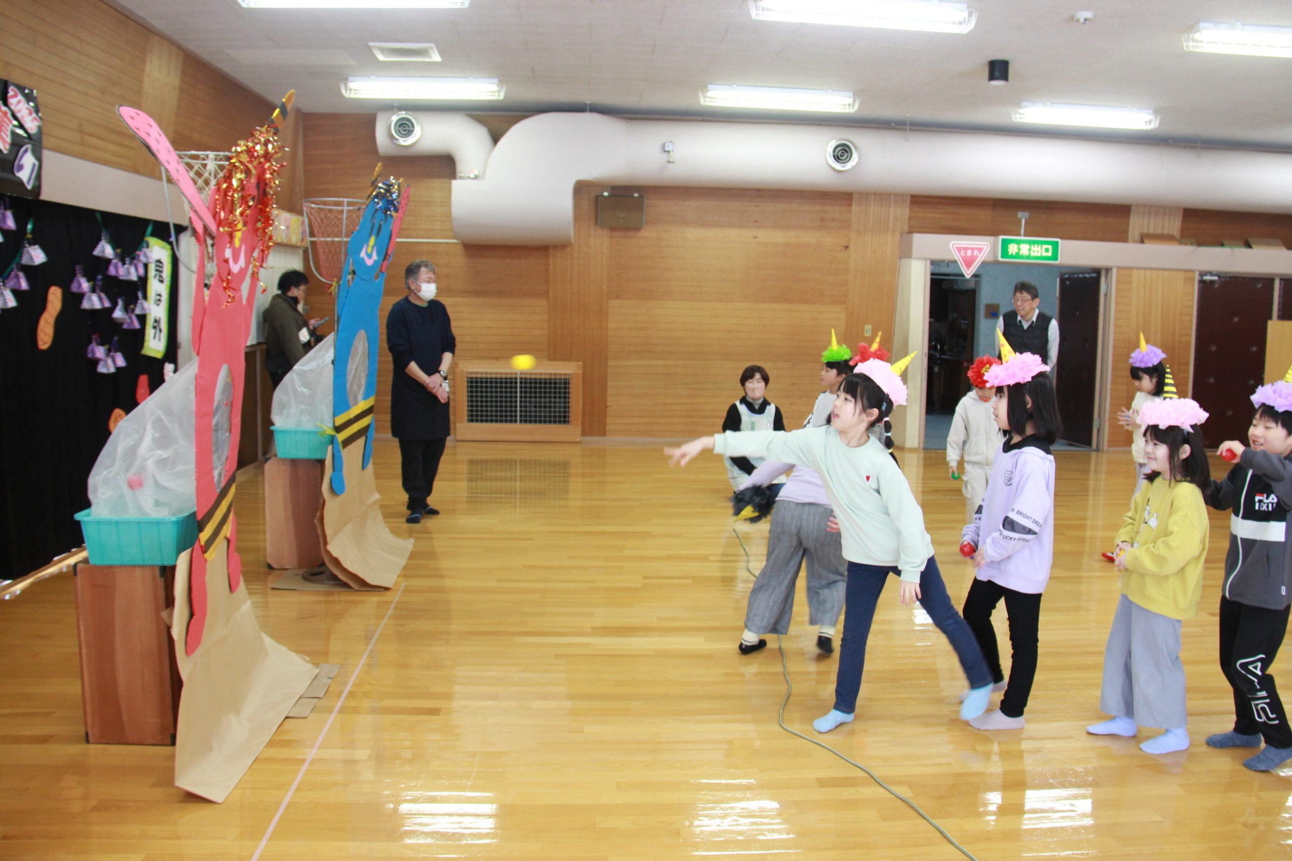 風連児童会館(小笠原弘館長)の節分行事「豆まきの集い2025」が、1月30日午後2時15分から同館で開かれ、子どもたちがゲームを楽しむとともに、福豆を受け取った。