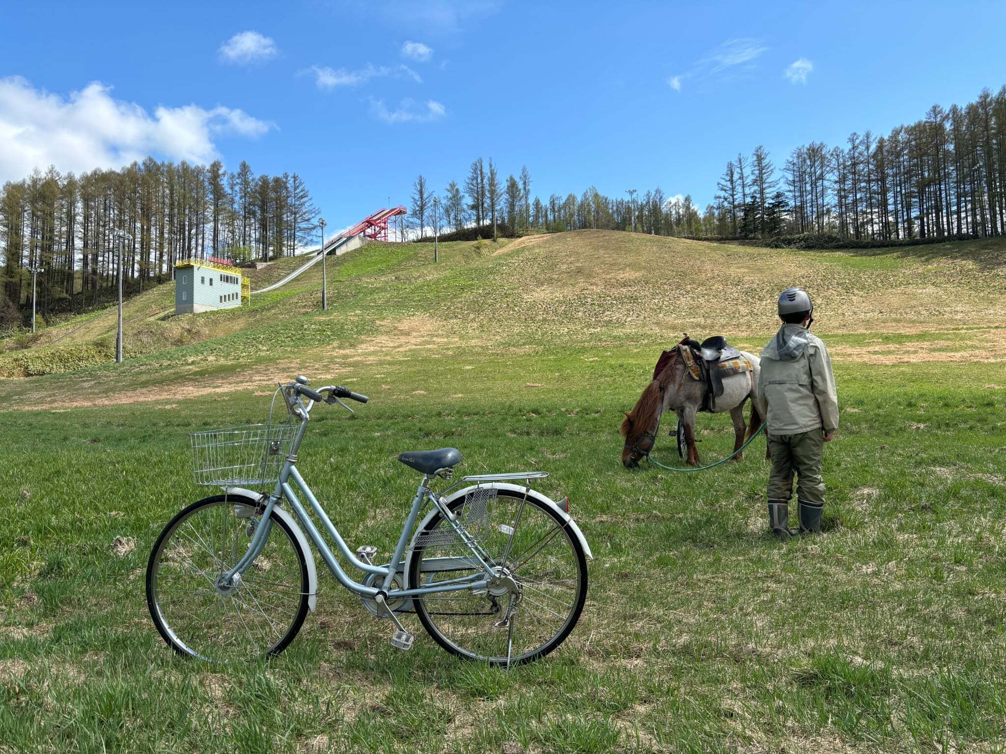 パンケヌカナン村準備会の普久原涼太代表はナイスポタリング賞作品に「ジャンプ台のあるスキー場は、夏も良い感じの丘の風景。自転車でのんびりポタリングをしていたら、ドサンコのハナちゃんにも会えたという、すてきなストーリー」。