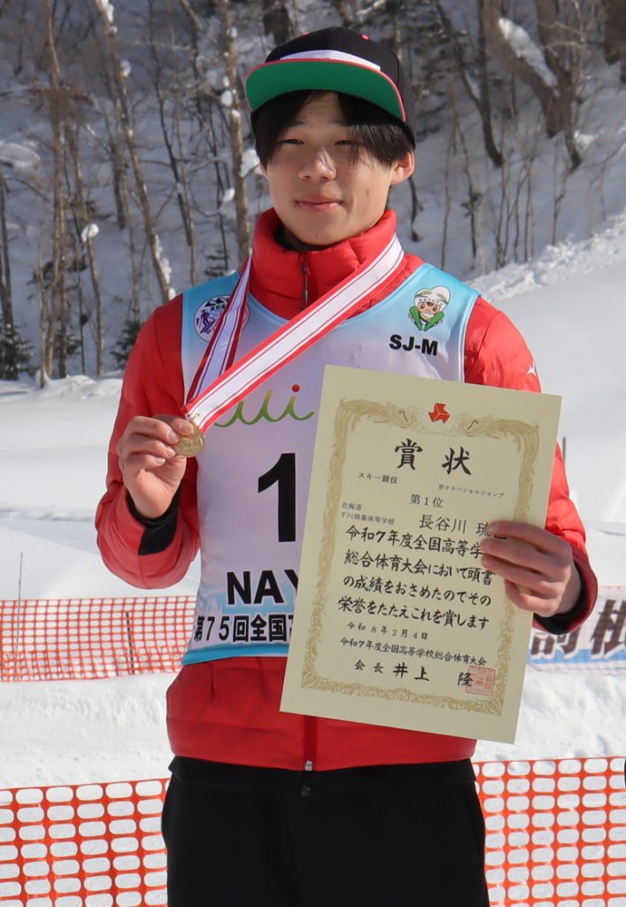 2025年度全国高校総合体育大会(インターハイ)・第75回全国高校スキー大会のスペシャルジャンプ競技が、4日午前9時半から名寄ピヤシリシャンツェノーマルヒル(HS100㍍、K点90㍍)で行われた。男子組では、名寄市出身で下川商業高校1年の長谷川琉已選手が、2位で挑んだ2本目に最長不倒の93・0mを飛び、逆転優勝を果たした。