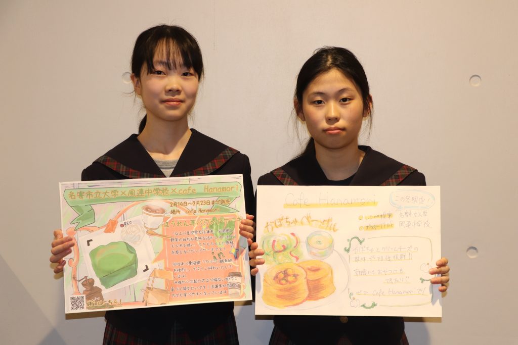 風連中の石川究教諭は「第1弾は、美術の授業でポスターを作成しました。第2弾は、希望者を募った結果、2年生2人がポスターを制作し、貴重な経験ができました」。