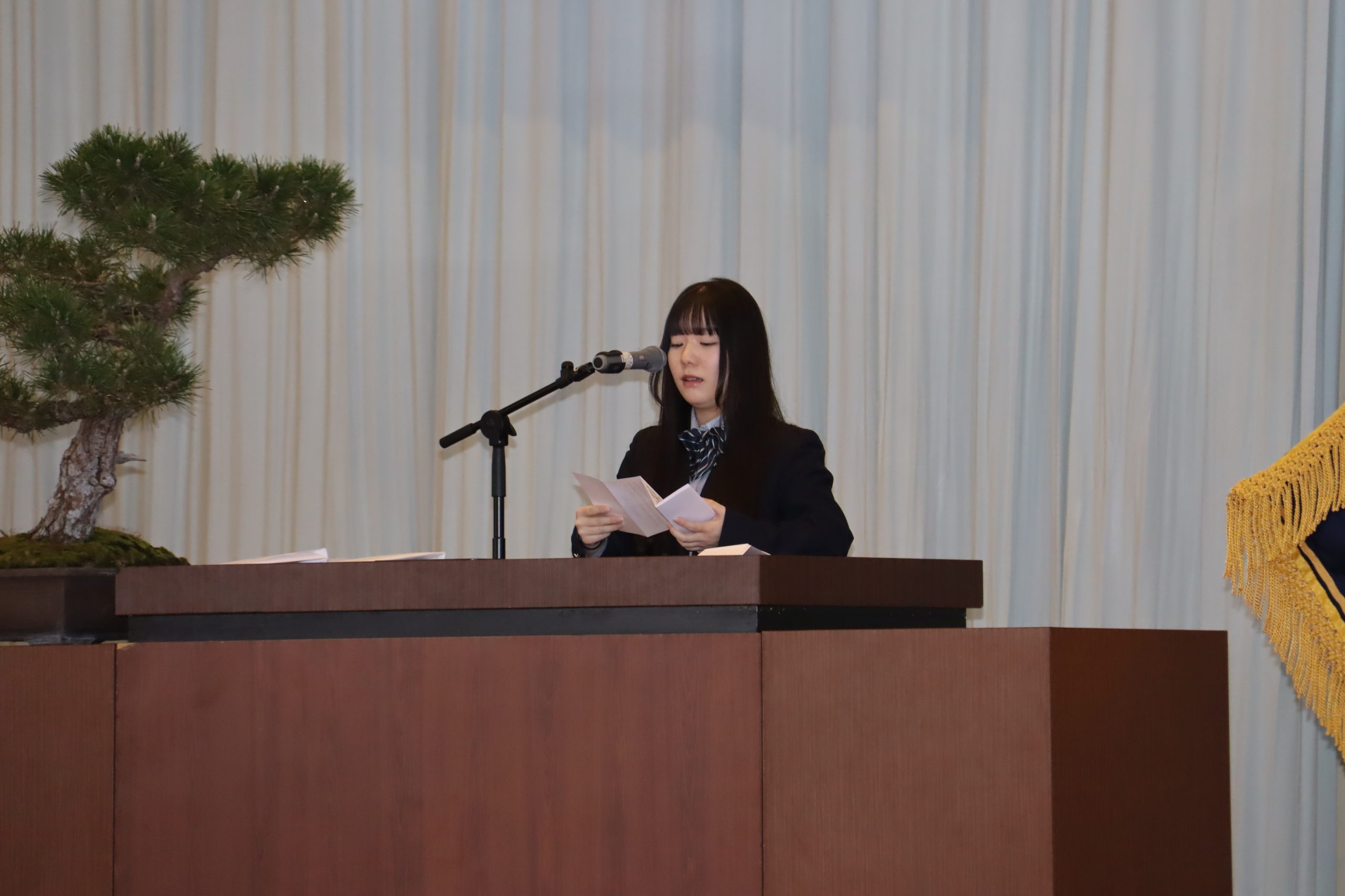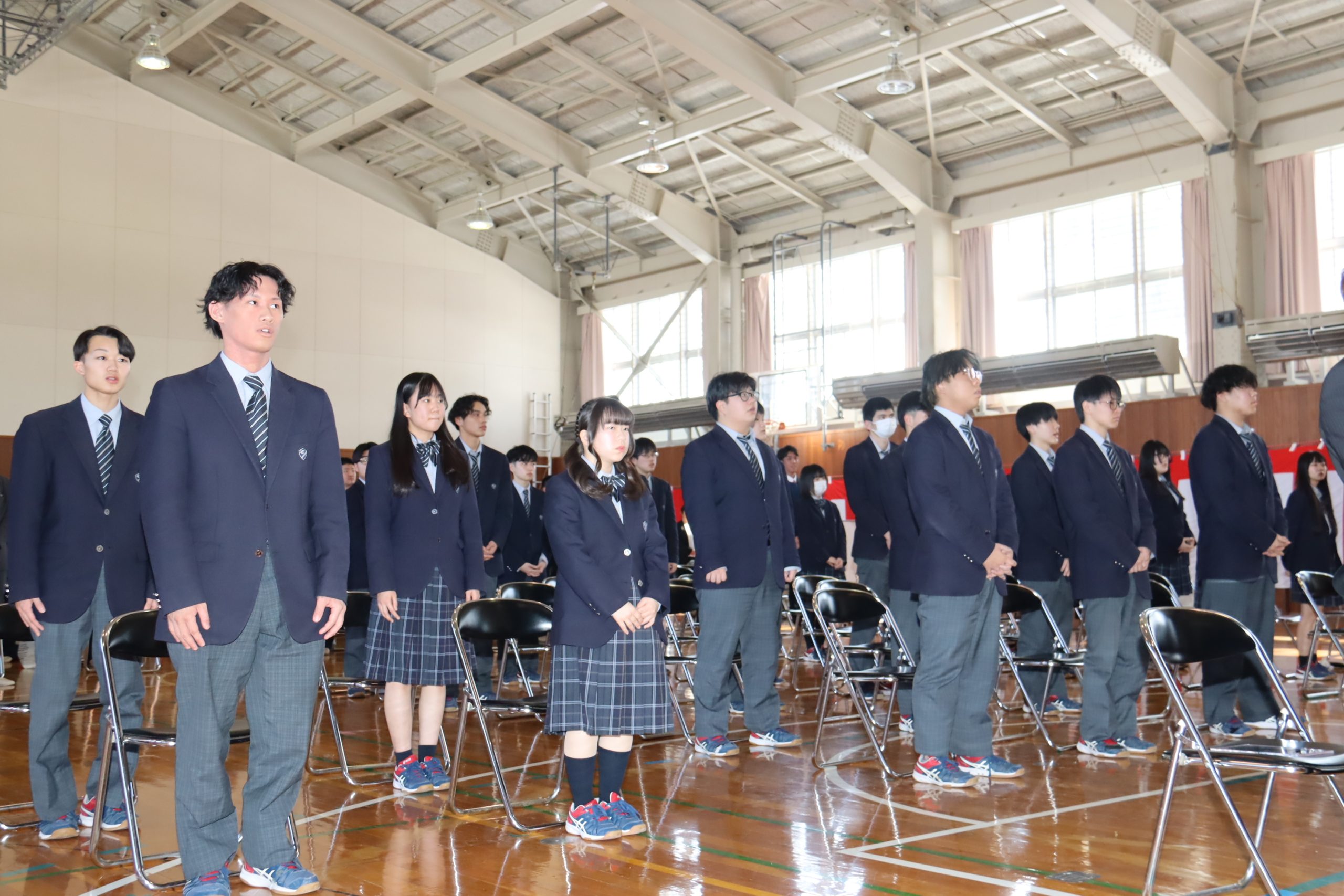 生徒会長の今野陽南さんが「最後の卒業生としての役割と責任を一人一人が自覚し取り組んできた結果、充実した一年を過ごすことができた。私たちを見守り育てていただいた先生方、共に歩んできた仲間たちに感謝申し上げたい。ここで過ごした全ての時間に心から感謝したい」と思いを述べた。