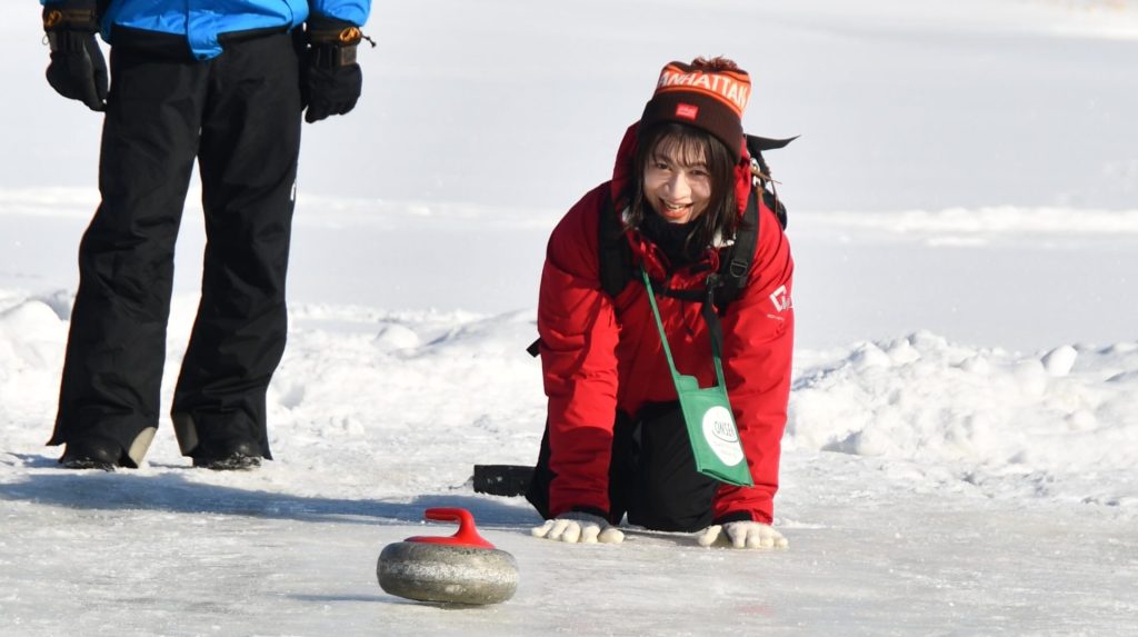 稚内市大沼の氷上でカーリング 冬のイベントに合わせ実証体験