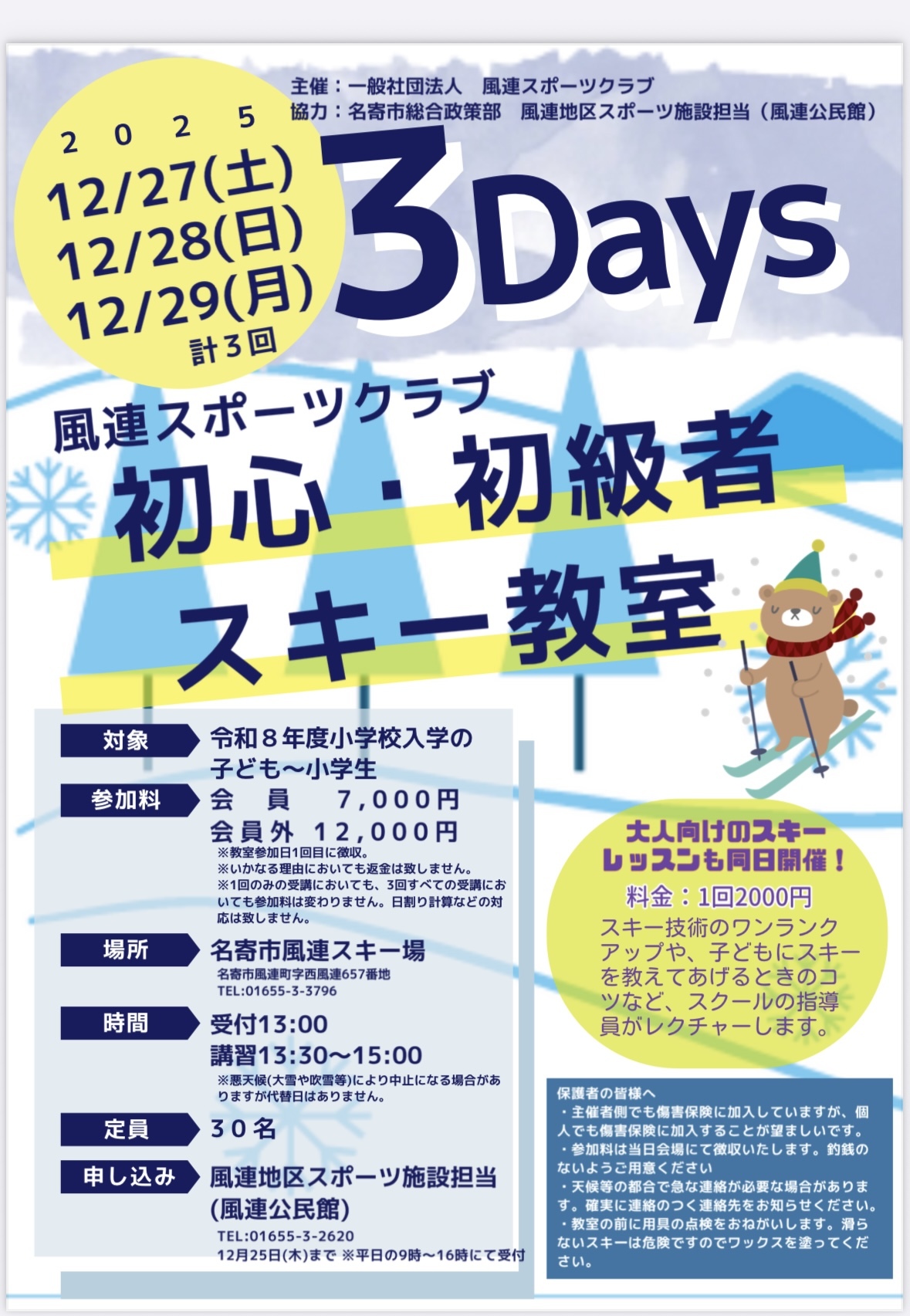 令和8年度小学校入学の子ども〜小学生向けのスキー教室。大人向けのスキーレッスンも同日開催!