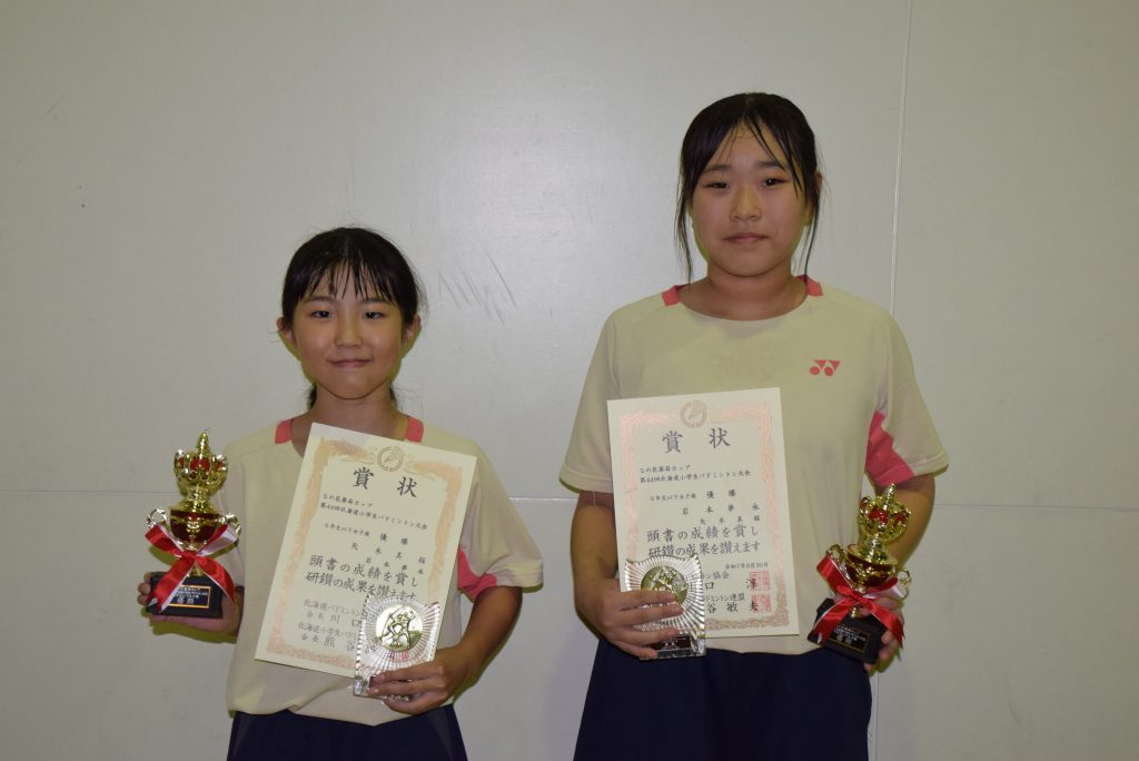 なの花薬局カップ第44回北海道小学生バドミントン大会が、このほど北ガスアリーナ札幌46で開かれ、稚内のバドミントンクラブチームの心奏羽B・Cに所属する岩本夢永さんと矢木美桜さんペアが6年生以下女子ダブルスで優勝。猿払JBC所属の石垣太惟さんと寒川井隼さんペアが6年生以下男子ダブルスで準優勝し、男女ともに12月19〜23日に広島県で開かれる全国大会出場権を得た。