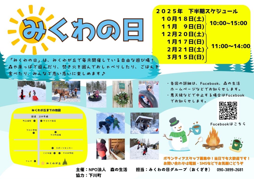 「みくわの日」は、みくわが丘で毎月開催している自由な遊び場!森や原っぱで遊んだり、焚き火を囲んでおしゃべりしたり、ごはんを食べたり、みんなで思い思いに楽しめます。