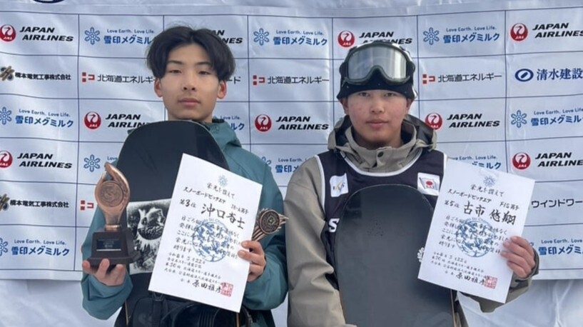 稚内市のスノーボードクラブチーム、TEAM SEAMORE(チームシーモア)に所属する古市悠翔さん(名寄高1年)と沖口杏士さん(稚内南中2年)が、3月にニセコ町のモイワスキーリゾートで開かれたスノーボードの2大会でビッグエアで上位入賞を果たした。