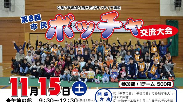 日時 11月15日(土) 午前の部 9:30-12:30 / 午後の部 13:30-16:30 会場 名寄市スポーツセンター(名寄市西7条南12丁目) 料金 参加費 500円/1チーム(当日お支払いください) 定員 午前の部・午後の部 各先着32チーム(1チーム3人もしくは2人) 申し込み 10月24日(金)までに申込用紙に必要事項を記入してメールもしくはFAXにて提出してください。 問い合わせ 名寄市社会福祉協議会 TEL: 01654-3-9862 E-MAIL: chiiki@nayoro-shakyo.jp